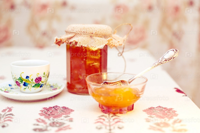 Чай с персиковым вареньем в стиле ретро