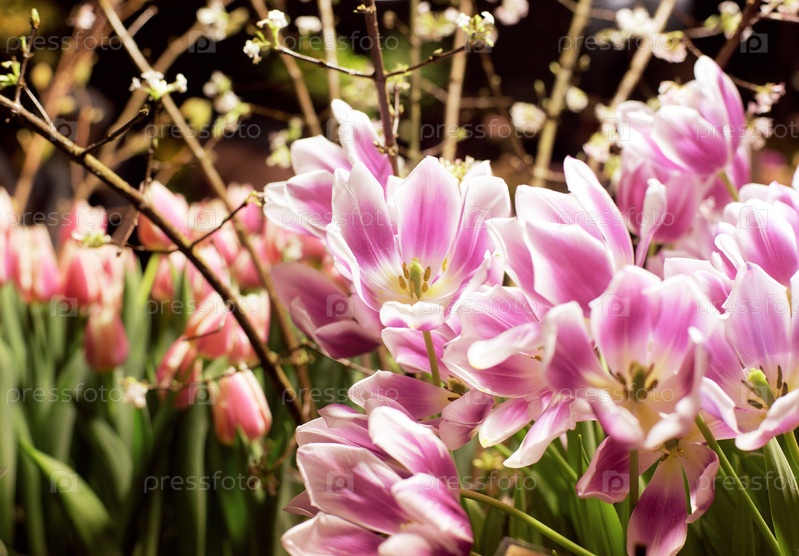 Весеннее настроение с тюльпанами и вишневым деревом