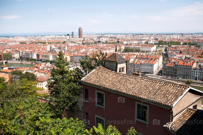 Вид на черепичные крыши французского города Лион