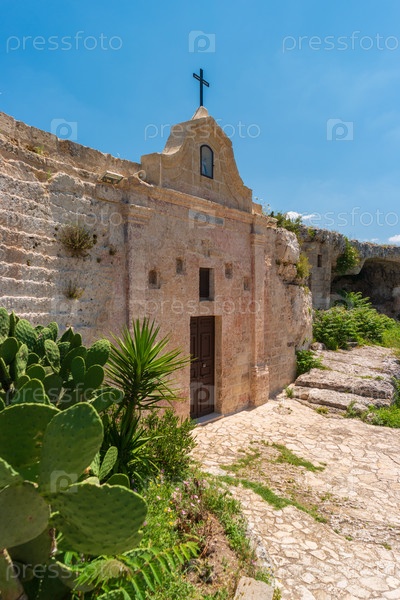 Вид на барочный фасад скальной церкви Богоматери делле Верджини (Санта Мария Масуло). Матера, регион Базиликата, на юге Италии
