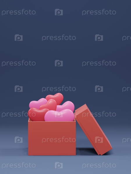 Подарочная коробка с открыткой из розовых сердечек, 3D-рендера