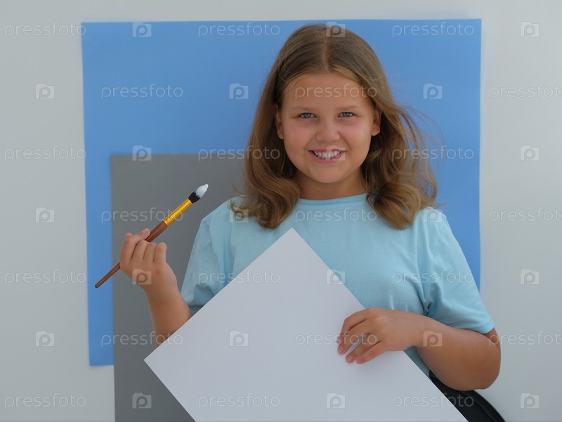 Девочка с белым листом и кисточкой в руках