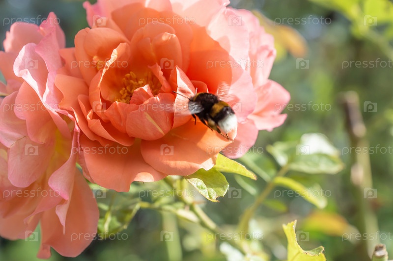 Пчела подлетает к розе