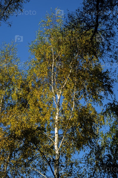 Береза сфотографирована на фоне синего неба