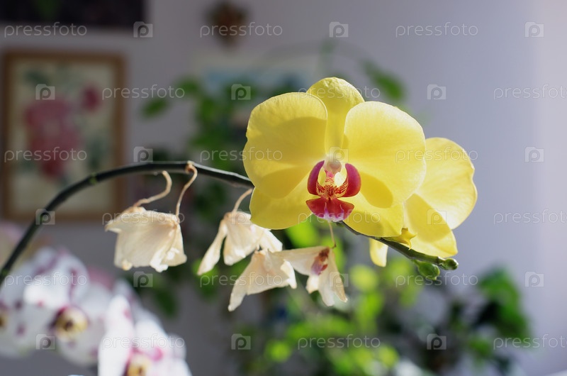 Желтая орхидея Фаленопсис с розовым центром