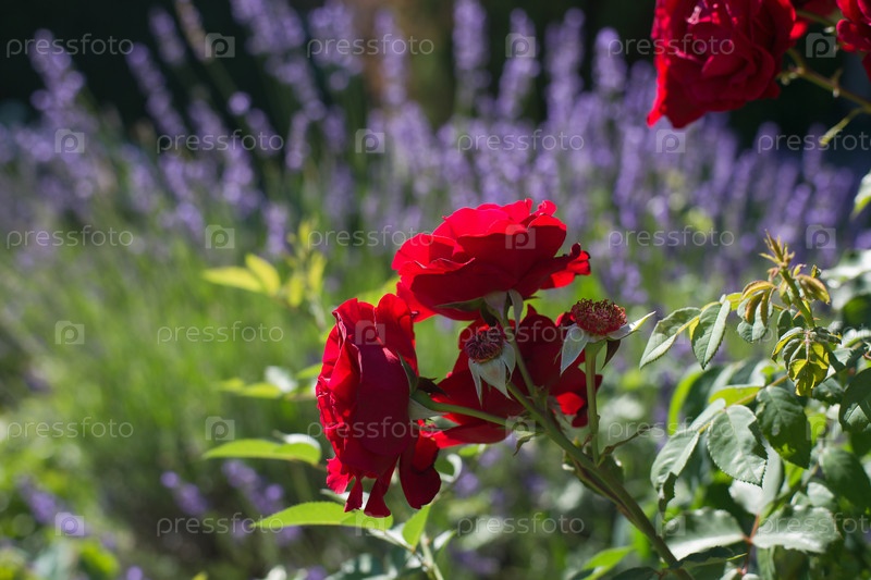 Сад с розами и лавандой