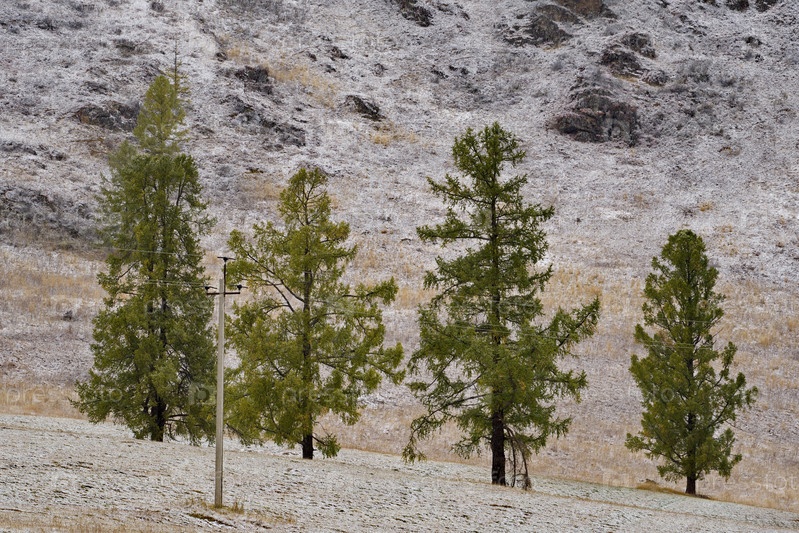 Россия. Юг Западной Сибири, Горный Алтай. Горные степи покрытые первым снегом вдоль Чуйского тракта