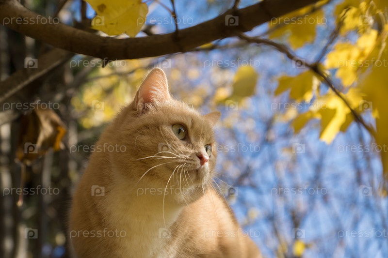 Кошка на осеннем дереве