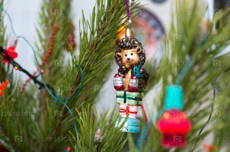 Стеклянный ежик на елке