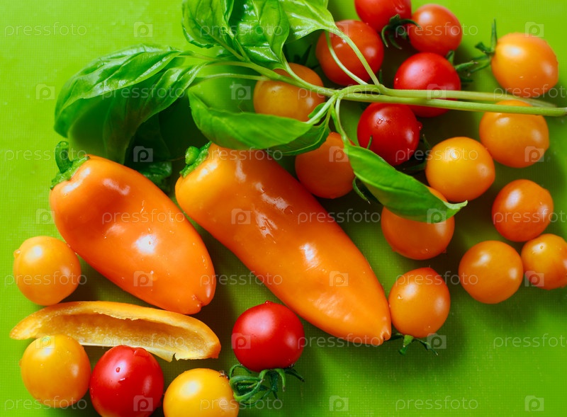 Красные овощи на зеленом фоне