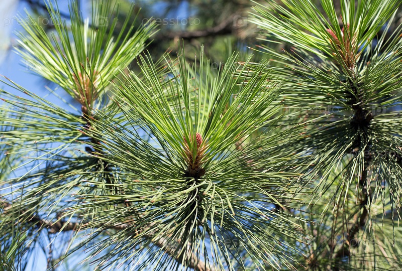 Длинные иголки южной сосны, молодая сосновая шишка