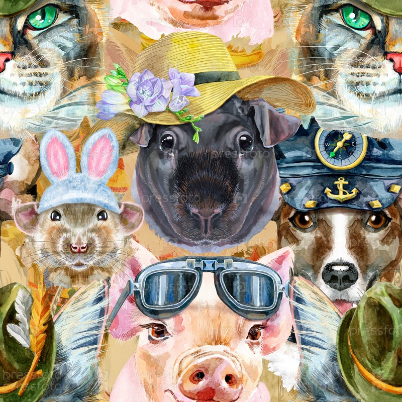 Бесшовный рисунок домашних животных. Ручная роспись акварельным рисунком, изолировать клип на белом фоне