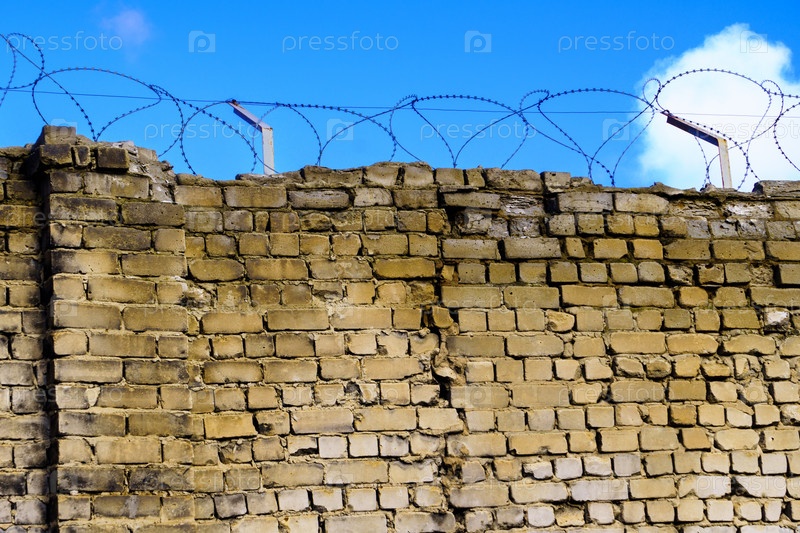 Кирпичная стена с колючей проволокой