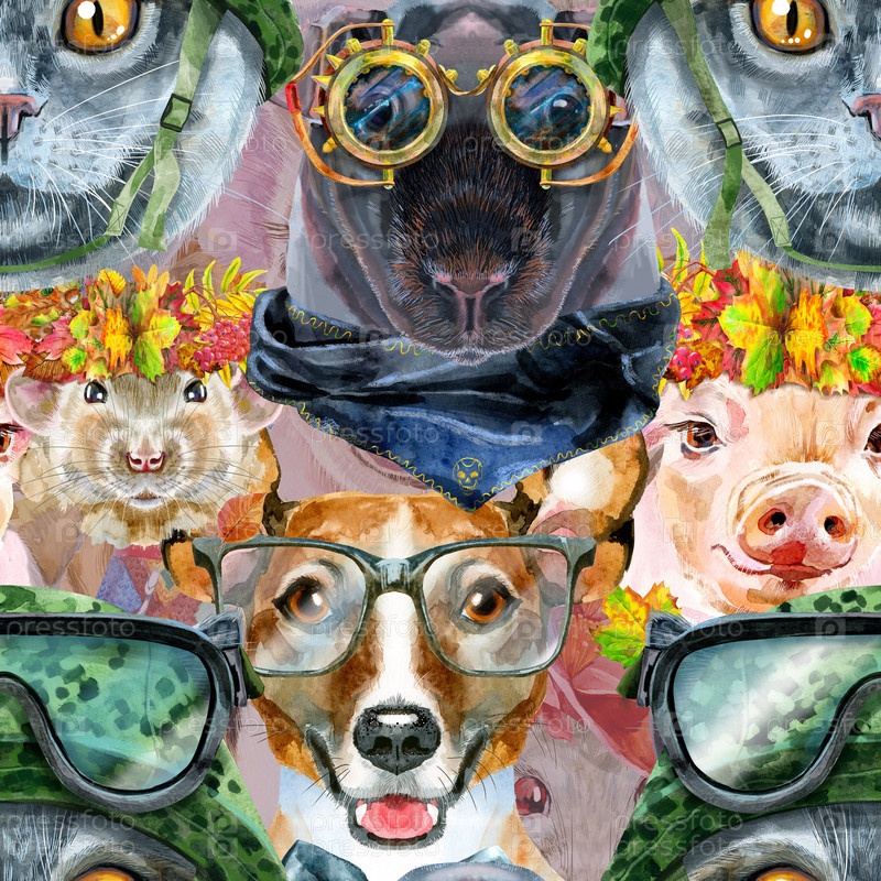 Бесшовный рисунок домашних животных. Ручная роспись акварельным рисунком, изолировать клип на белом фоне