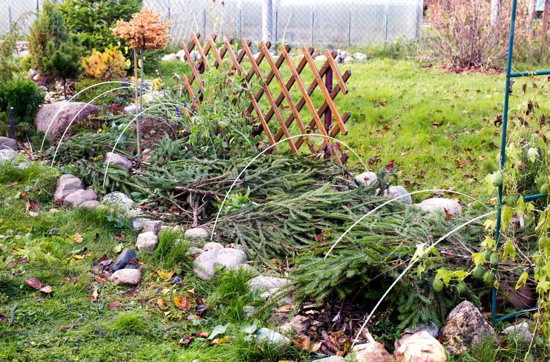 Зимнее укрытие розы еловыми ветками