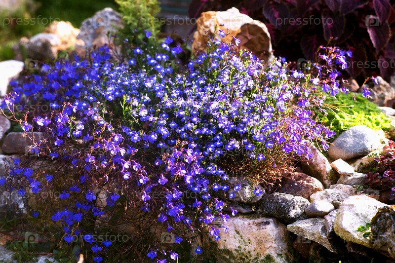 Пышное цветение лобелии в рокариях
