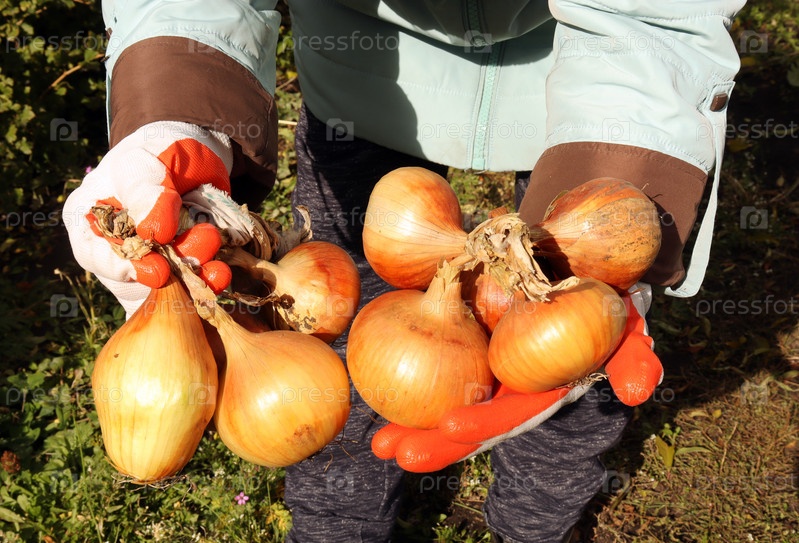Собранный лук женщина держат в руках
