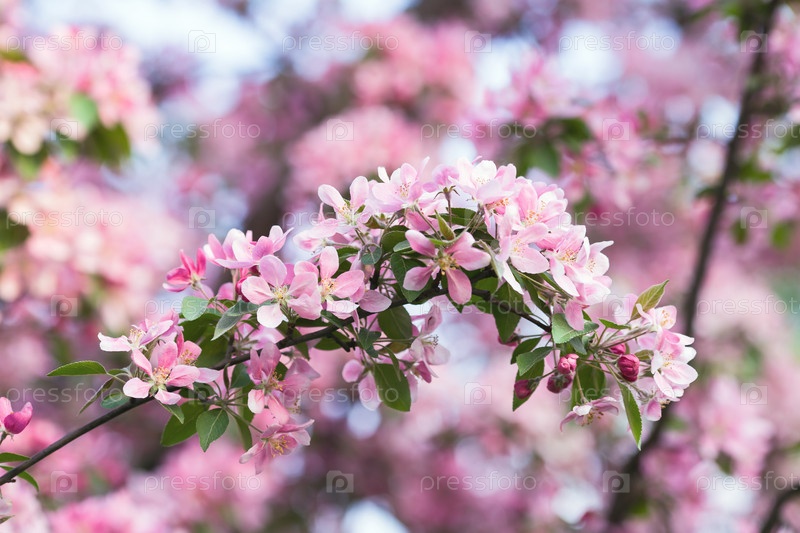 Цветущая розовая яблоня
