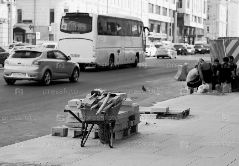 Ремонт тротуарной плитки на Тверской улице, Москва