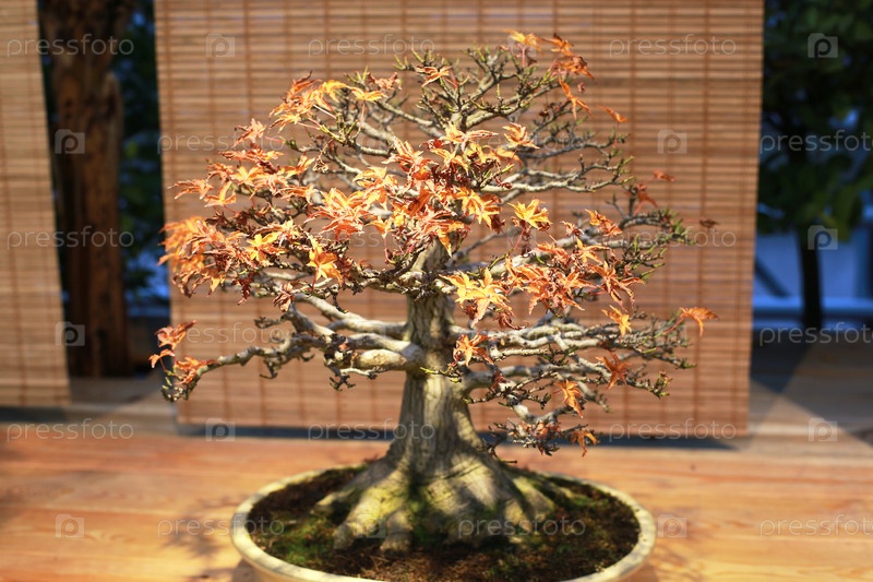 Декоративный карликовый клен осенью.Бонсай