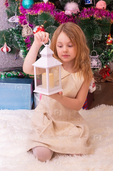 Красивая нарядная девочка возле елки в Новый год. Праздник. Новый год. Ребенок-модель. Красивая элегантная девушка рядом с рождественской ёлкой в Новый год. Отпуск. Новый год. Ребёнок является моделью
