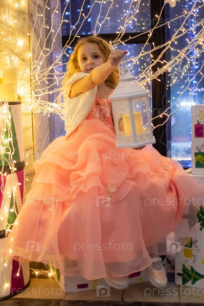 Красивая нарядная девочка возле елки в Новый год. Праздник. Новый год. Ребенок-модель. Красивая элегантная девушка рядом с рождественской ёлкой в Новый год. Отпуск. Новый год. Ребёнок является моделью