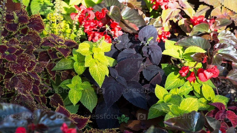 Разные виды колеуса в сочетании с бегонией