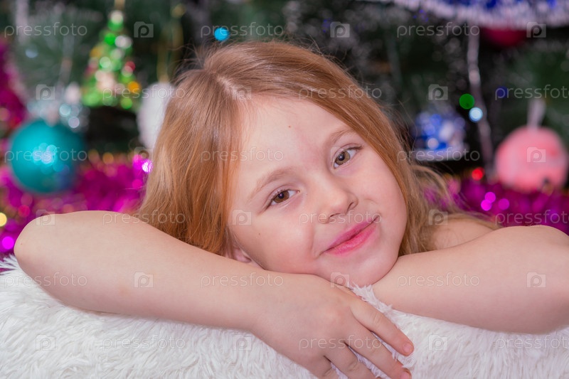 Красивая нарядная девочка возле елки в Новый год. Праздник. Новый год. Ребенок-модель. Красивая элегантная девушка рядом с рождественской ёлкой в Новый год. Отпуск. Новый год. Ребёнок является моделью