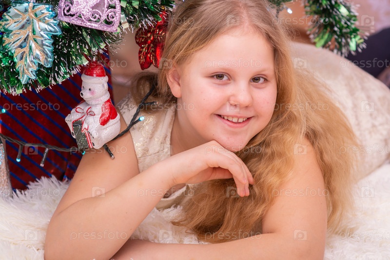 Красивая нарядная девочка возле елки в Новый год. Праздник. Новый год. Ребенок-модель. Красивая элегантная девушка рядом с рождественской ёлкой в Новый год. Отпуск. Новый год. Ребёнок является моделью