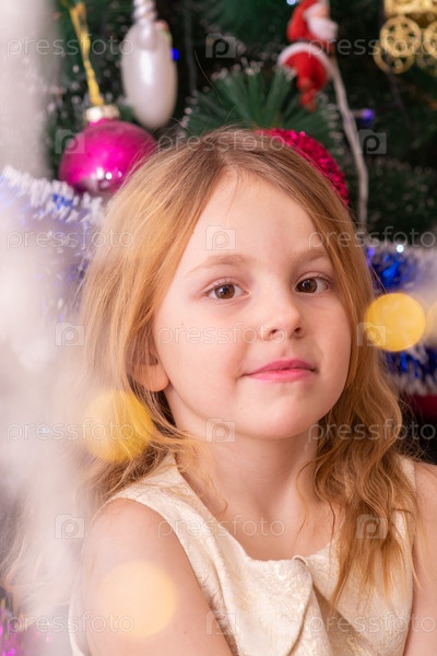 Красивая нарядная девочка возле елки в Новый год. Праздник. Новый год. Ребенок-модель. Красивая элегантная девушка рядом с рождественской ёлкой в Новый год. Отпуск. Новый год. Ребёнок является моделью