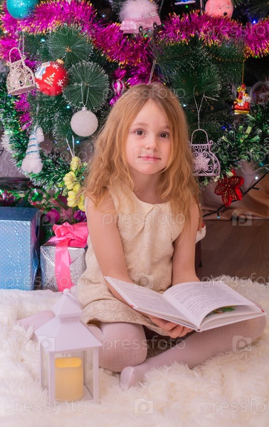 Красивая нарядная девочка возле елки в Новый год. Праздник. Новый год. Ребенок-модель. Красивая элегантная девушка рядом с рождественской ёлкой в Новый год. Отпуск. Новый год. Ребёнок является моделью