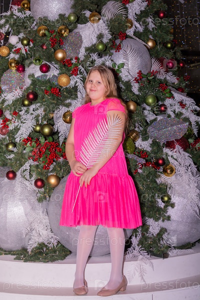 Красивая нарядная девочка возле елки в Новый год. Праздник. Новый год. Ребенок-модель. Красивая элегантная девушка рядом с рождественской ёлкой в Новый год. Отпуск. Новый год. Ребёнок является моделью