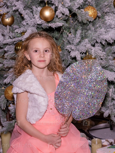 Красивая нарядная девочка возле елки в Новый год. Праздник. Новый год. Ребенок-модель. Красивая элегантная девушка рядом с рождественской ёлкой в Новый год. Отпуск. Новый год. Ребёнок является моделью