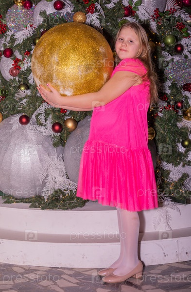 Красивая нарядная девочка возле елки в Новый год. Праздник. Новый год. Ребенок-модель. Красивая элегантная девушка рядом с рождественской ёлкой в Новый год. Отпуск. Новый год. Ребёнок является моделью