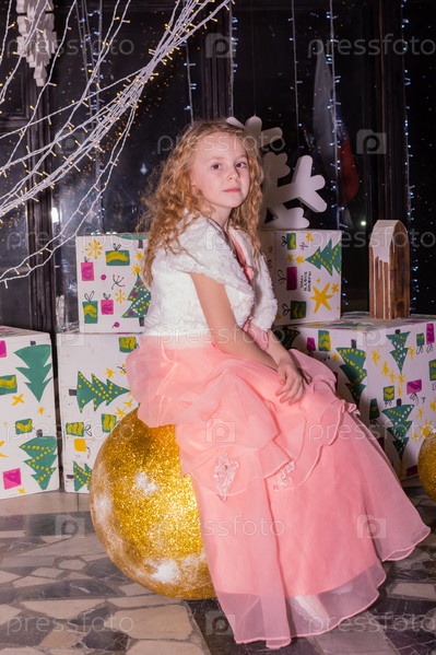 Красивая нарядная девочка возле елки в Новый год. Праздник. Новый год. Ребенок-модель. Красивая элегантная девушка рядом с рождественской ёлкой в Новый год. Отпуск. Новый год. Ребёнок является моделью
