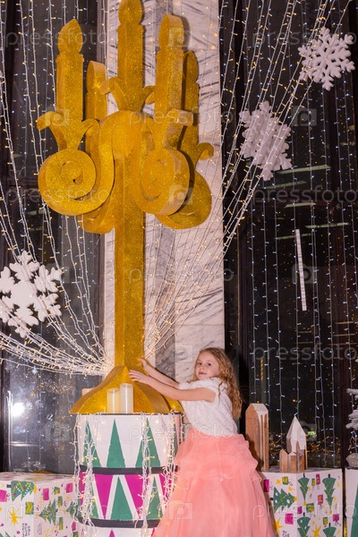 Красивая нарядная девочка возле елки в Новый год. Праздник. Новый год. Ребенок-модель. Красивая элегантная девушка рядом с рождественской ёлкой в Новый год. Отпуск. Новый год. Ребёнок является моделью