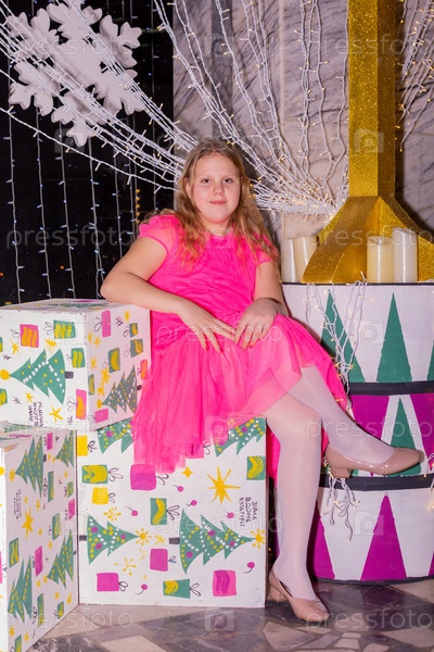 Красивая нарядная девочка возле елки в Новый год. Праздник. Новый год. Ребенок-модель. Красивая элегантная девушка рядом с рождественской ёлкой в Новый год. Отпуск. Новый год. Ребёнок является моделью