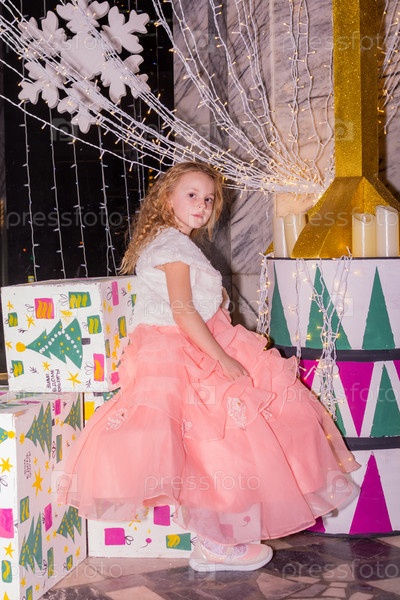 Красивая нарядная девочка возле елки в Новый год. Праздник. Новый год. Ребенок-модель. Красивая элегантная девушка рядом с рождественской ёлкой в Новый год. Отпуск. Новый год. Ребёнок является моделью