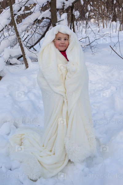 Красивая девушка в снежном лесу зимой