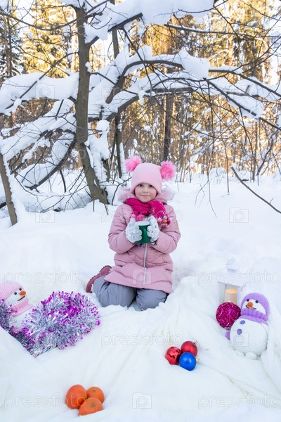 Красивая девушка в снежном лесу зимой