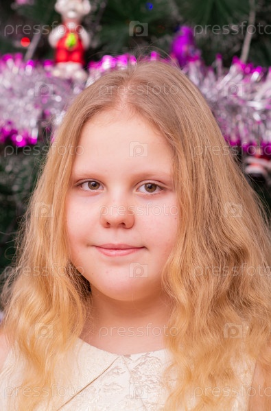 Красивая нарядная девочка возле елки в Новый год. Праздник. Новый год. Ребенок-модель. Красивая элегантная девушка рядом с рождественской ёлкой в Новый год. Отпуск. Новый год. Ребёнок является моделью