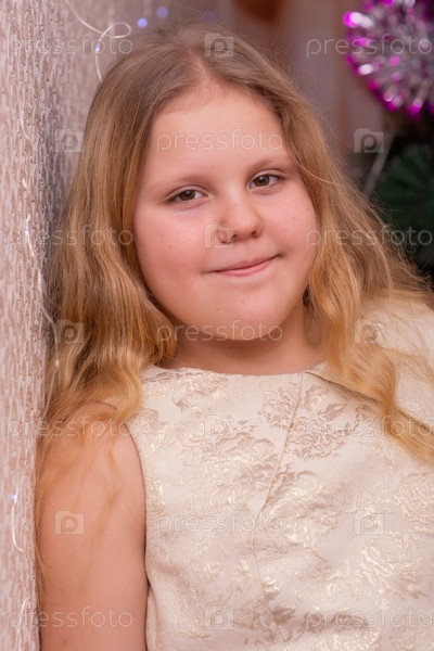 Красивая нарядная девочка возле елки в Новый год. Праздник. Новый год. Ребенок-модель. Красивая элегантная девушка рядом с рождественской ёлкой в Новый год. Отпуск. Новый год. Ребёнок является моделью