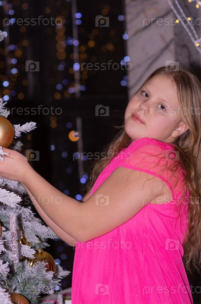 Красивая нарядная девочка возле елки в Новый год. Праздник. Новый год. Ребенок-модель. Красивая элегантная девушка рядом с рождественской ёлкой в Новый год. Отпуск. Новый год. Ребёнок является моделью