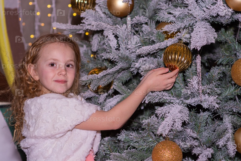 Красивая нарядная девочка возле елки в Новый год. Праздник. Новый год. Ребенок-модель. Красивая элегантная девушка рядом с рождественской ёлкой в Новый год. Отпуск. Новый год. Ребёнок является моделью