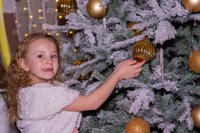 Красивая нарядная девочка возле елки в Новый год. Праздник. Новый год. Ребенок-модель. Красивая элегантная девушка рядом с рождественской ёлкой в Новый год. Отпуск. Новый год. Ребёнок является моделью