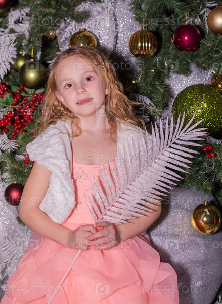 Красивая нарядная девочка возле елки в Новый год. Праздник. Новый год. Ребенок-модель. Красивая элегантная девушка рядом с рождественской ёлкой в Новый год. Отпуск. Новый год. Ребёнок является моделью