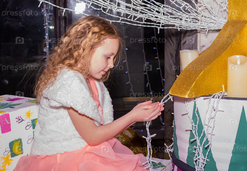 Красивая нарядная девочка возле елки в Новый год. Праздник. Новый год. Ребенок-модель. Красивая элегантная девушка рядом с рождественской ёлкой в Новый год. Отпуск. Новый год. Ребёнок является моделью