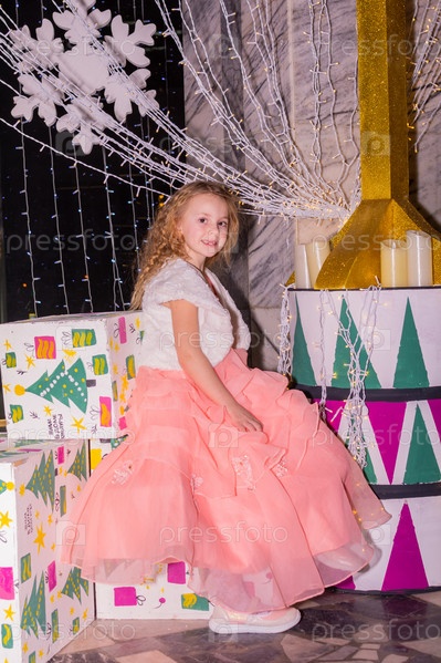 Красивая нарядная девочка возле елки в Новый год. Праздник. Новый год. Ребенок-модель. Красивая элегантная девушка рядом с рождественской ёлкой в Новый год. Отпуск. Новый год. Ребёнок является моделью