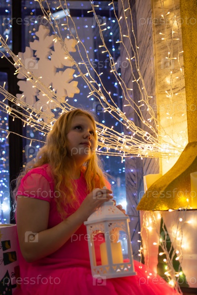 Красивая нарядная девочка возле елки в Новый год. Праздник. Новый год. Ребенок-модель. Красивая элегантная девушка рядом с рождественской ёлкой в Новый год. Отпуск. Новый год. Ребёнок является моделью