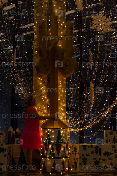 Красивая нарядная девочка возле елки в Новый год. Праздник. Новый год. Ребенок-модель. Красивая элегантная девушка рядом с рождественской ёлкой в Новый год. Отпуск. Новый год. Ребёнок является моделью